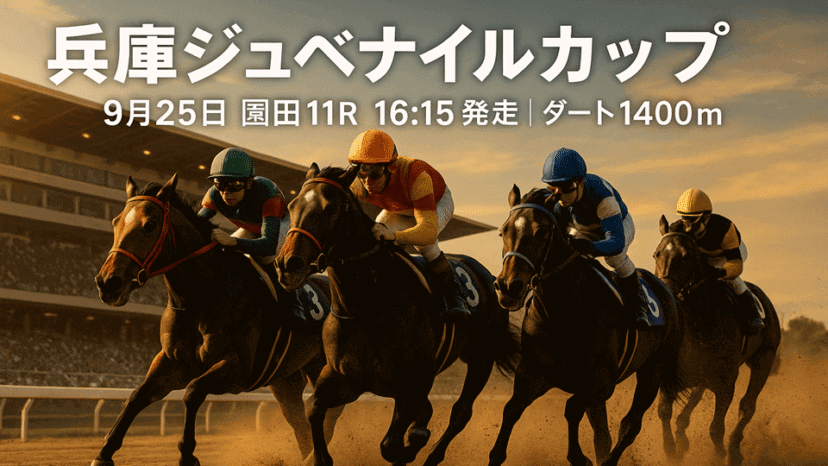9月25日園田11R「兵庫ジュベナイルカップ2025」の予想を公開。ゴッドフェンサー、リーガルタイムら注目2歳馬の仕上がりや展開を分析し、本命と買い目を提示。