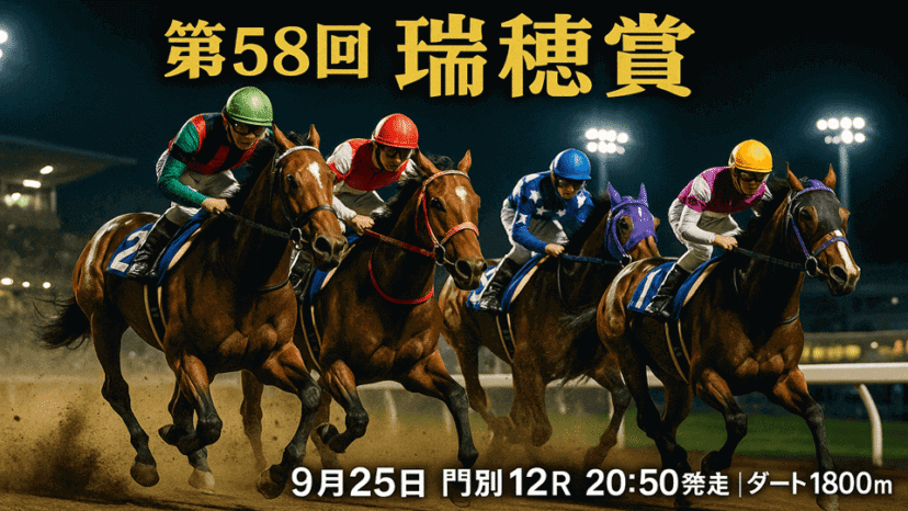 9月25日門別12R「瑞穂賞2025(H2)」の予想を公開。ベルピット、ニシケンボブ、ヒストリーメイカーら注目馬の調教・展開を分析し、本命と買い目を提示。