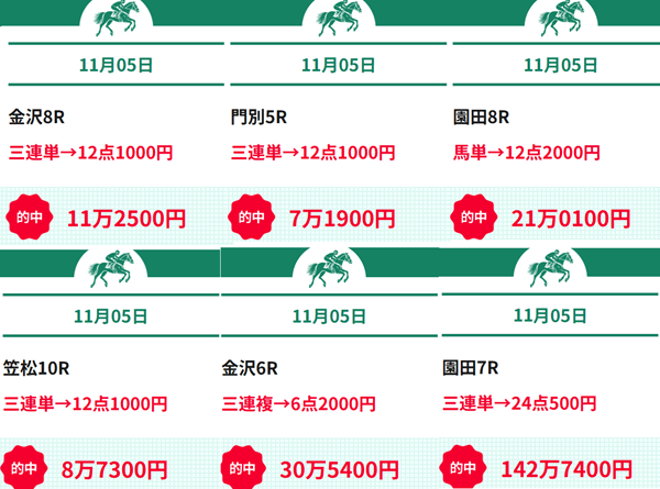 2025年11月5日時点での的中実績を見ても、信頼性は抜群。