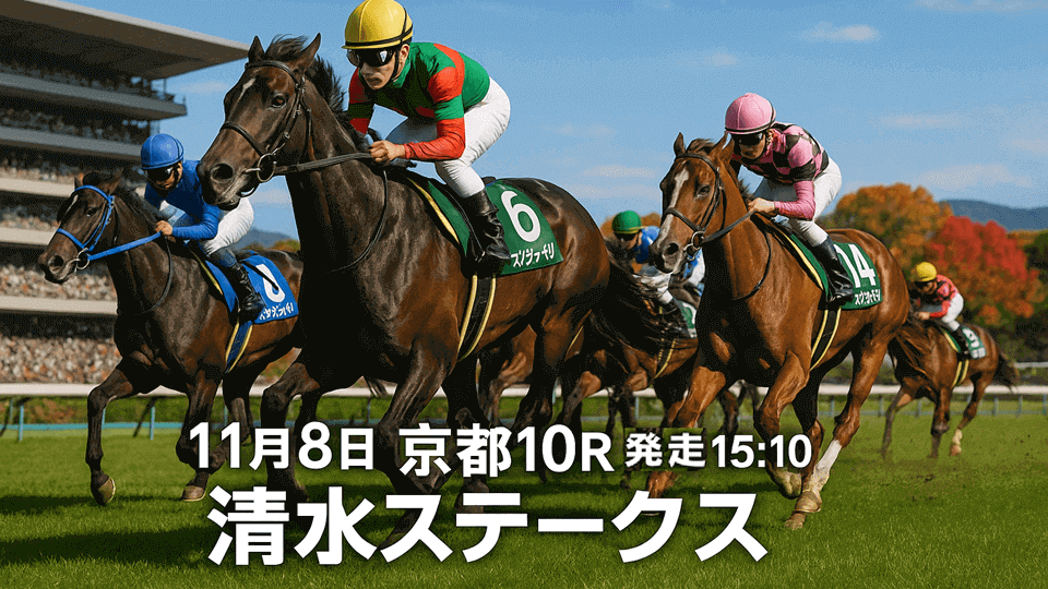 2025年11月8日(土)東京10R・ダ1600mの3勝クラス「錦秋S」。前走好内容のヴァンドームと上昇気配のルグランヴァンに、叩き良化のアルゴナヴィス、初ダートで一変もあるモンドデラモーレが挑む構図です。逃げ手はメイショウミカワで平均ペース想定、好位差しが決め手の東京コースで“仕上がり+立ち回り”を軸に本命と買い目を絞ります。