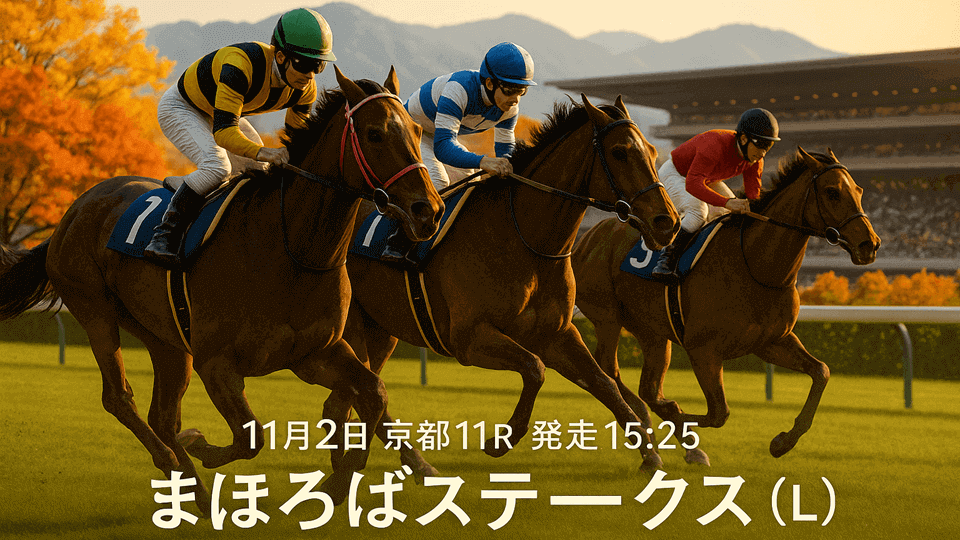 11月2日(日)京都10R「古都ステークス」は、京都外回りBの芝3000mで行われる3勝クラスの長距離ハンデ戦。④ロードオールライトの単騎でスロー想定、好位差しの持続力がカギ。昨年3着⑨フルールを軸に、③タイセイフェリーク・⑬アクアヴァーナルが相手本線。