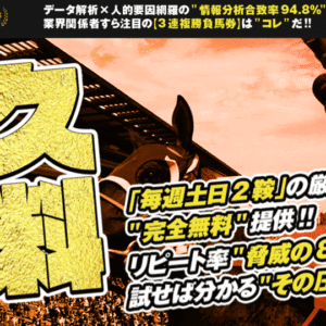 独占情報を“見える化”し、初心者でもわかりやすい予想を提供。競馬に精通した馬券師が徹底的に分析したデータがベースになっており、信頼性が高いのが特徴です。