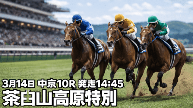 | 中山10R | 14:50 | 鹿野山特別 | 4歳以上2勝クラス・定量 | 芝2000m |
